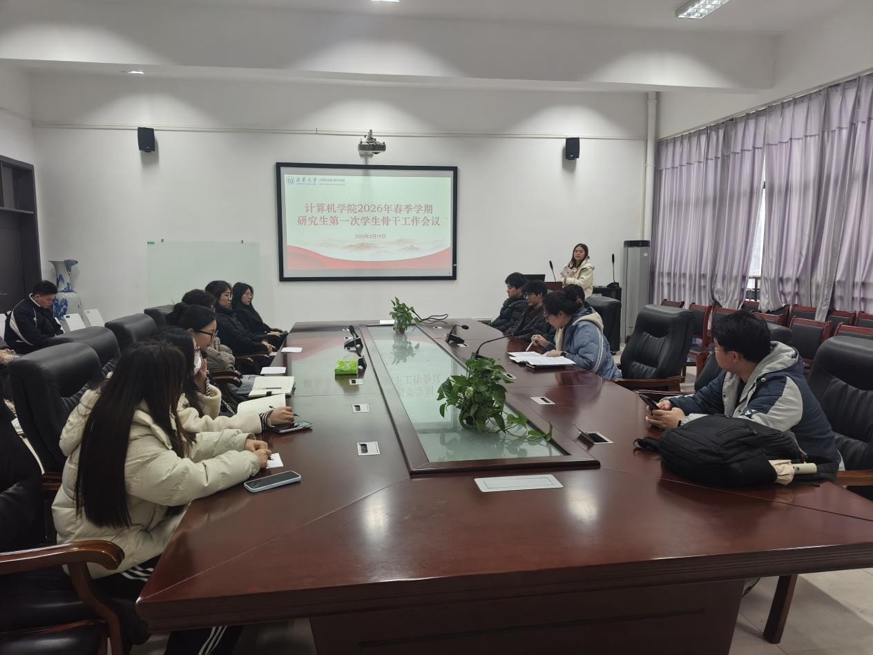 3月19日下午15:00,计算机学院召开了2026年春季学期研究生学生骨干第一次工作会议。会议由计算机学院研究生辅导员单云丽主持,研究生会主要成员及各班级学生骨干参加了此次会议。