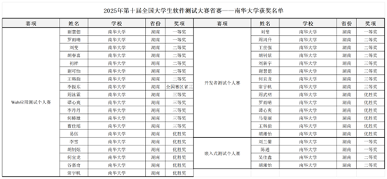 2025年第十届全国大学生软件测试大赛省赛--南华大学获奖名单