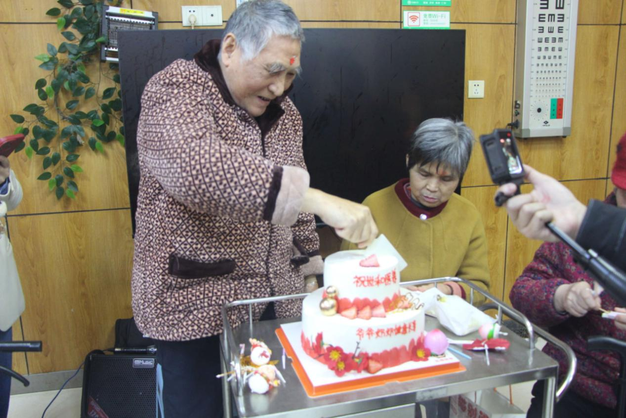 伴随《生日快乐》乐曲,生日蛋糕缓缓推入现场。寿星们共许心愿、吹熄蜡烛、分切蛋糕。志愿者们将蛋糕逐一送至在场每位老人的手中,每一份生日蛋糕都承载着真诚的祝福与关怀。