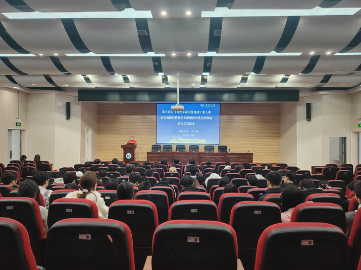 11月9日,南华大学计算机学院在雨母校区崇业楼学术报告厅举行2025年秋季入党积极分子培训。南华大学马克思主义学院党委书记何小英教授应邀担任主讲嘉宾,以《深入学习〈习近平谈治国理政〉第五卷 自觉做新时代党的创新理论的坚定信仰者和忠实实践者》为主题,为学员们解读《习近平谈治国理政》第五卷的主要内容和时代价值。