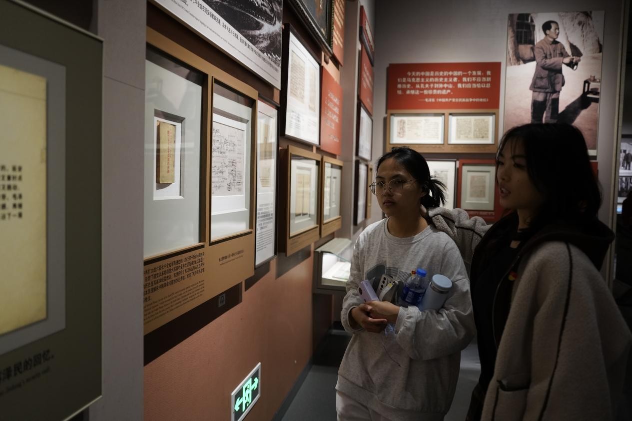 活动首站抵达毛泽东同志故居。在庄严肃穆的故居广场,全体人员自觉整理着装、规范佩戴党徽,在讲解员的引导下有序步入故居。青瓦灰墙的古朴建筑内,大家屏息聆听讲解,目光细致掠过堂屋的桌椅、厨房的炊具与阁楼的书桌,深入了解毛泽东同志的家庭渊源、早年生活点滴与求学探索经历,真切体会到这位伟人从韶山冲走出、立志救国救民的初心萌芽。离开故居,全体人员怀着愈发崇敬的心情前往毛主席铜像广场。大家整齐列队,神情肃穆,依次向毛主席铜像深深鞠躬,以此表达对伟人丰功伟绩的深切缅怀。随后,在领誓人的带领下,全体党员面向鲜红党旗,高高举起右拳庄严重温入党誓词。“我志愿加入中国共产党,拥护党的纲领……”铿锵有力的誓言在广场上空久久回荡,不仅是对入党初心的重温,更是对使命担当的重申,进一步坚定了在场人员的理想信念与党性修养。短暂休整后,队伍一行前往毛泽东同志纪念馆,继续红色研学之旅。在讲解员的细致引导下,大家按展区时间线依次参观,驻足于一件件承载历史记忆的文物、一幅幅定格峥嵘岁月的照片、一份份见证伟大历程的文献前,结合多媒体场景展示,系统回顾了毛泽东同志从领导新民主主义革命推翻三座大山,到带领人民进行社会主义革命和建设的波澜壮阔的伟大实践,深刻感悟其不朽功勋与光辉成就。