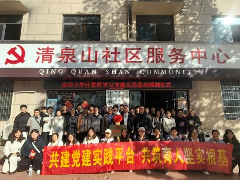 活动伊始,清泉山社区党总支书记宋诗妍带领参会人员参观了社区党群服务中心,详细介绍了社区党建工作基础、便民服务举措及特色治理模式,让师生代表对社区建设有了全面直观的认识。随后,乡团委书记张钞围绕党建实践基地的建设背景、功能定位及后续发展规划进行阐述,明确了基地将聚焦党性教育、志愿服务、社会实践等重点领域,为双方合作提供坚实支撑。酃湖乡党委书记何庆华在讲话中对党建实践基地的成立表示祝贺。他指出,南华大学计算机学院拥有深厚的育人资源和专业优势,基地的建立是校地优势互补、共谋发展的重要举措,将为酃湖乡基层党建注入新鲜活力,也为乡村振兴、社区治理提供智力支持,希望双方以基地为纽带,深化合作、携手共进。南华大学计算机学院党委书记刘志明表示,党建实践基地是学院延伸党建工作触角、强化实践育人的重要载体。学院将充分发挥学科专业特色,组织师生深入社区开展志愿服务、科技帮扶等活动,在实践中锤炼师生党性修养、提升综合能力,同时助力地方发展,实现校地双赢。
