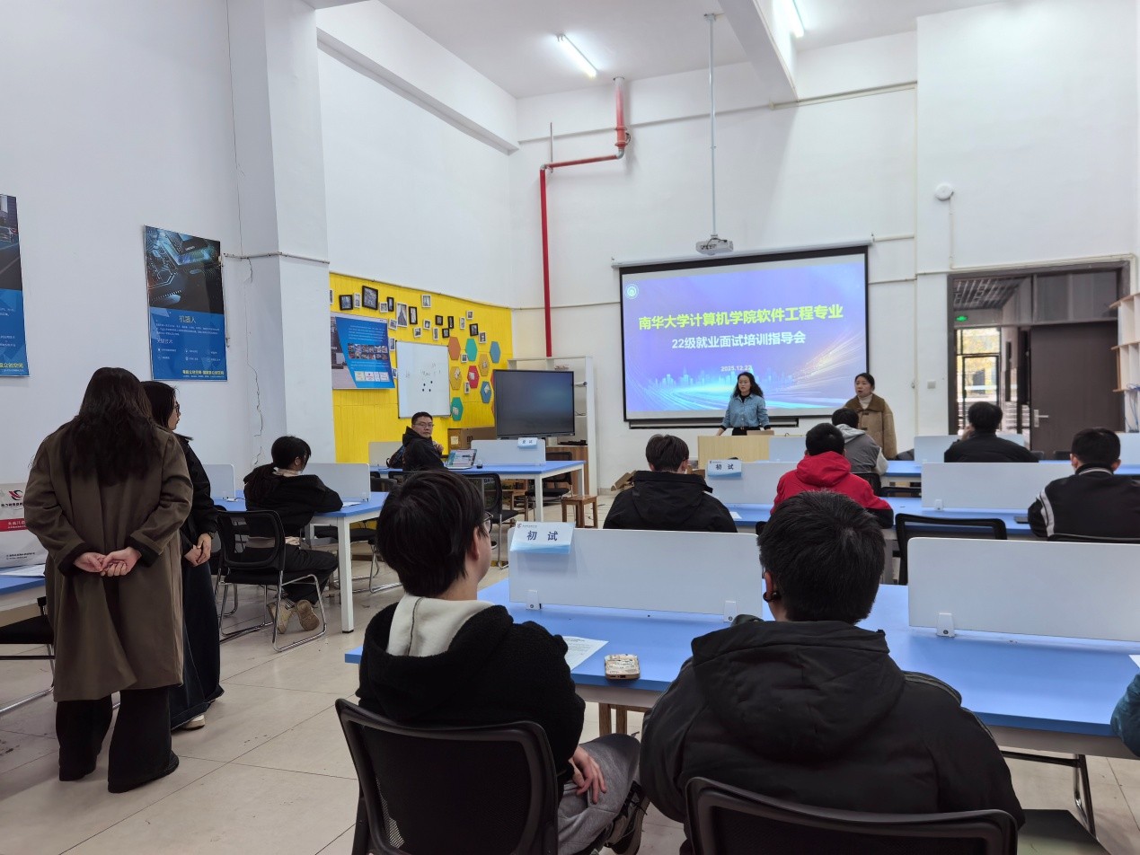 为提升22级软件工程专业毕业生面试技能、助力求职通关,南华大学计算机学院软件工程专业联合长沙军民先进研究院校企共建合作基地,于12月22日下午三点举办企业面试培训指导会。活动汇聚多地企业HR专家,精准对接不同区域用人需求,为学子量身定制求职指导。参与培训指导的公司包括广州柒量一裁品牌管理有限公司、长沙军民先进技术研究院、衡阳比邻汇创科技有限公司以及衡阳湘南软件园有限公司等。