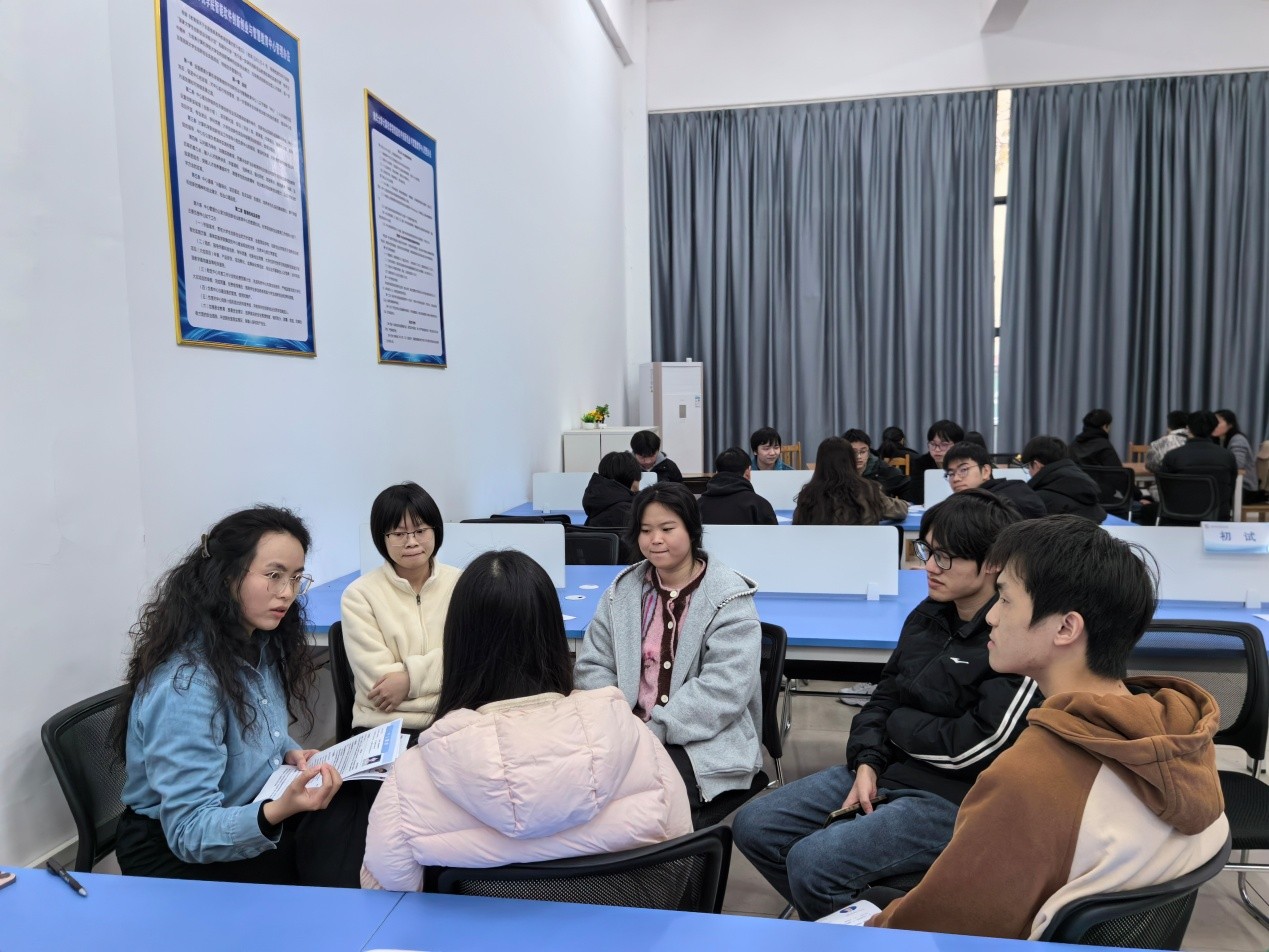 接着衡阳湘南软件园有限公司办公室主任周明珍对本次参与活动的四家企业进行了推介同时介绍了活动总体流程。进入培训环节,将参与本次活动的26名同学按5-6人分组开展集体面试,由三家企业的四位HR进行针对性考察,全程模拟真实面试场景,助力学子沉浸式感受面试氛围、锤炼临场应变能力。